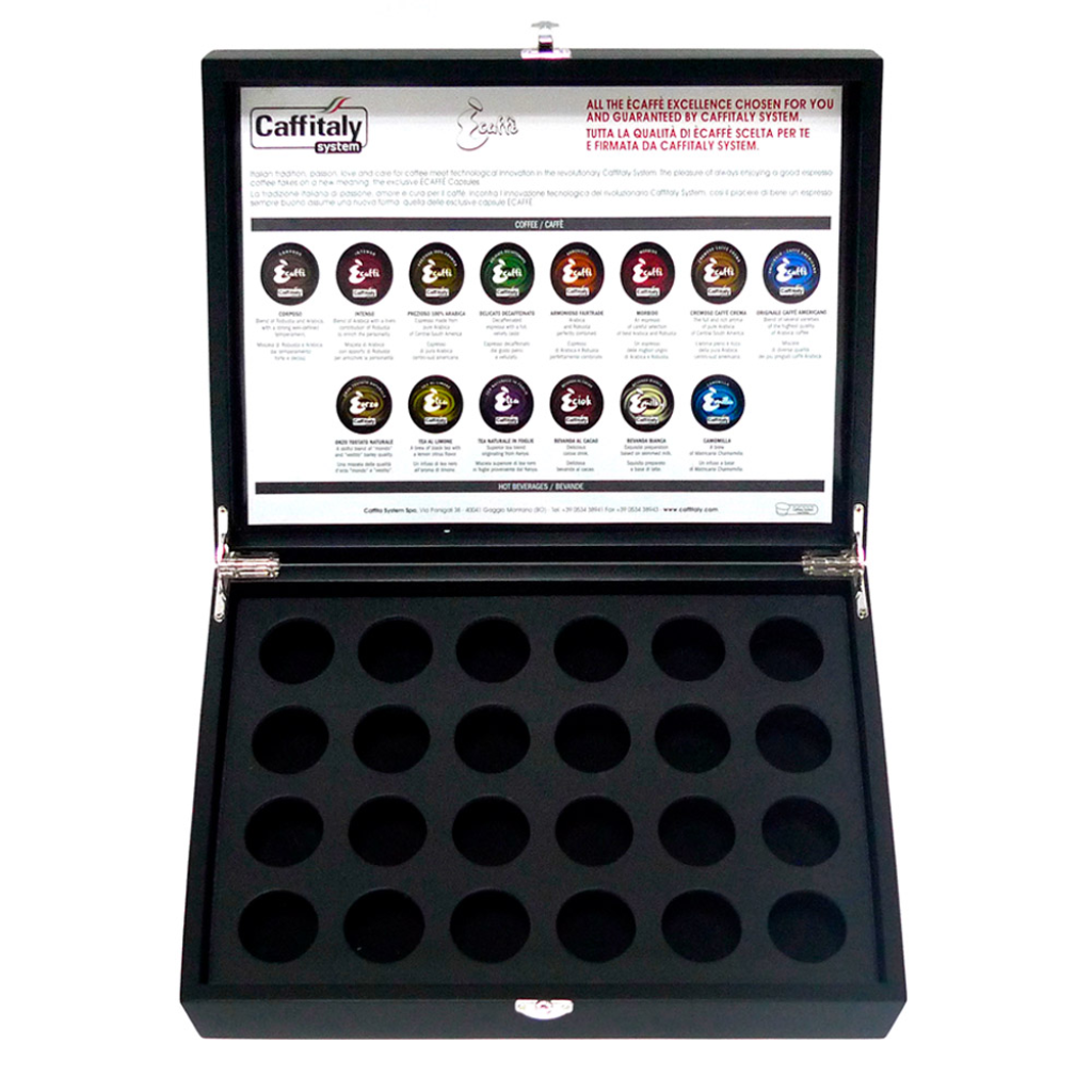 Деревянный бокс Caffitaly — элегантное решение для аккуратного хранения и эффектной презентации капсул кофе в доме, офисе или переговорной зоне. Это также шикарный подарок для дорогого человека и ценителей премиального кофе. В бокс помещается 24 капсулы Caffitaly.